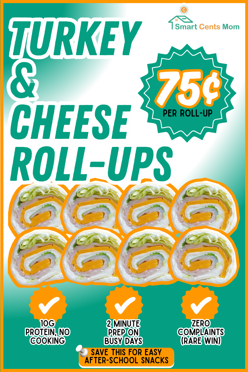 When homework battles have everyone frustrated, these take 2 minutes to make. Spread cream cheese on deli turkey slices, add a cheese stick, and roll tightly. Slice into pinwheels if your kids think that’s fancy. Each roll-up costs about 75 cents with 10 grams of protein. Both boys will eat these without complaint, which feels like a miracle some days. Buy deli turkey from the Publix deli counter on BOGO weeks and freeze half. Add a pickle inside for kids who like tangy flavors, or use ham instead when it’s cheaper.